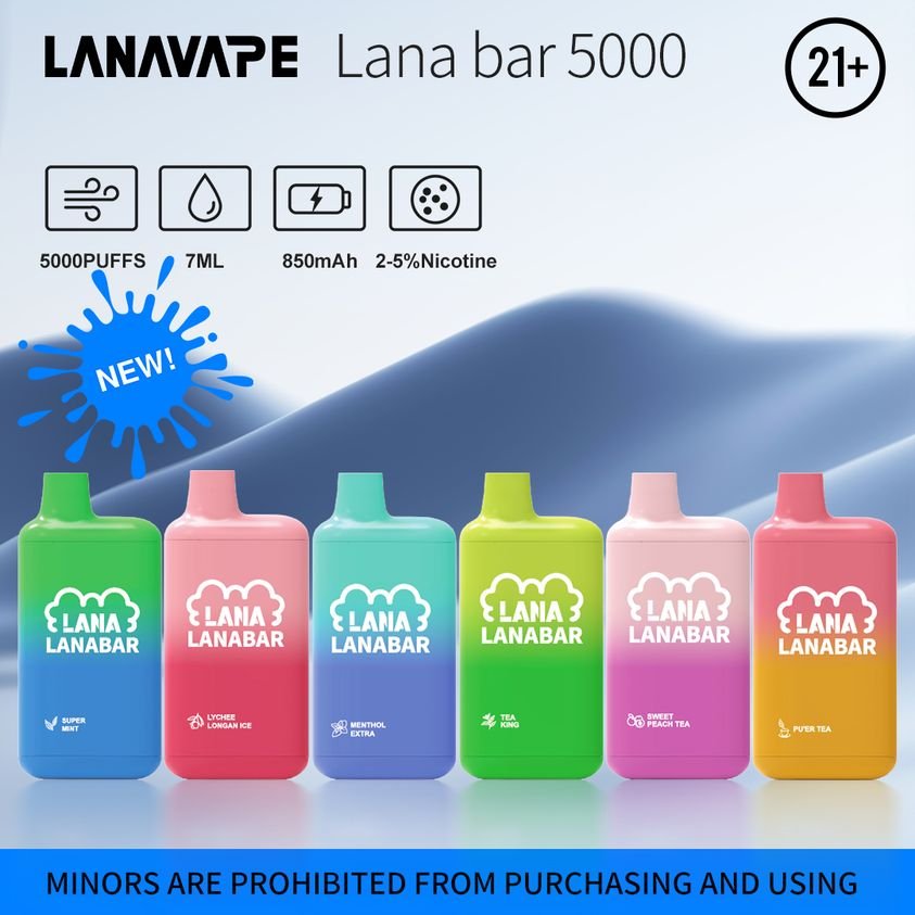 LanaBar 5000 Disposable is a rechargeable vape device distributed by LANA VAPE company. This portable and compact design allows for easy carrying by users.